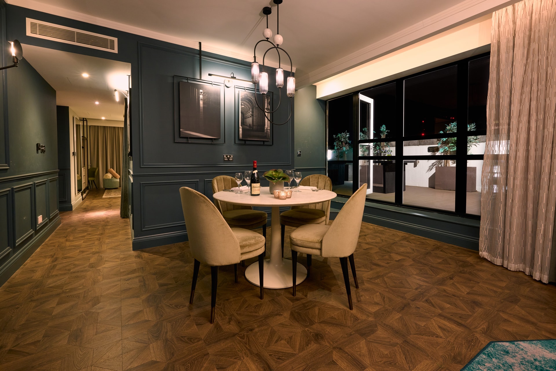 Add the neighbouring rooms and transform this suite into a decadent space for six.